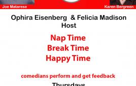 VIEWNap Time Happy Hour is a fun comedy show contest featuring top stand up comedians performing and judging up and comers. Hosted weekly by Felicia Madison and Ophira Eisenberg. A fun time for anyone. Join us with Karen Bergreen and Joe Matarese as we crttique two comedians, Debbie Bazza and a special guest! Streaming...
