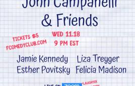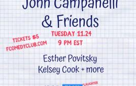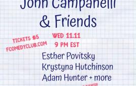VIEWJohn Campanelli and friends features comediansEsther Povitsky ( Alone Together, Doll Face )Krystyna Hutchinson ( The Guys We Fucked) andAdam Hunter ( Last Comic Standing, Jimmy Kimmel, Tonight Show)
