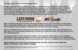 VIEW6 hour intensive workshop wher eyou recieve individual coaching on the spot with Eddie, as well as from fellow classmates:allowing for a unique student-teacher persepective in the process of building a firm foundation for you to easily understand how to truly be yourself onstage. This is an exclusive workshop for comedians that have al...