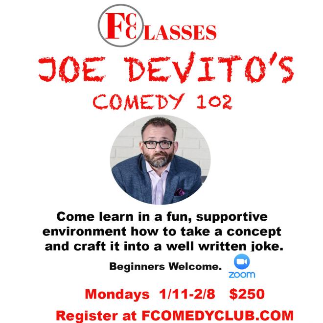 Learn the fundamentals of stand up comedy with Joe DeVito via Zoom. The overall goal of the class is to provide you with the basic writing and performance skills to develop a 5 minute stand up routine. You will be asked to write your own material, edit and do homework each week. Beginners welcome.