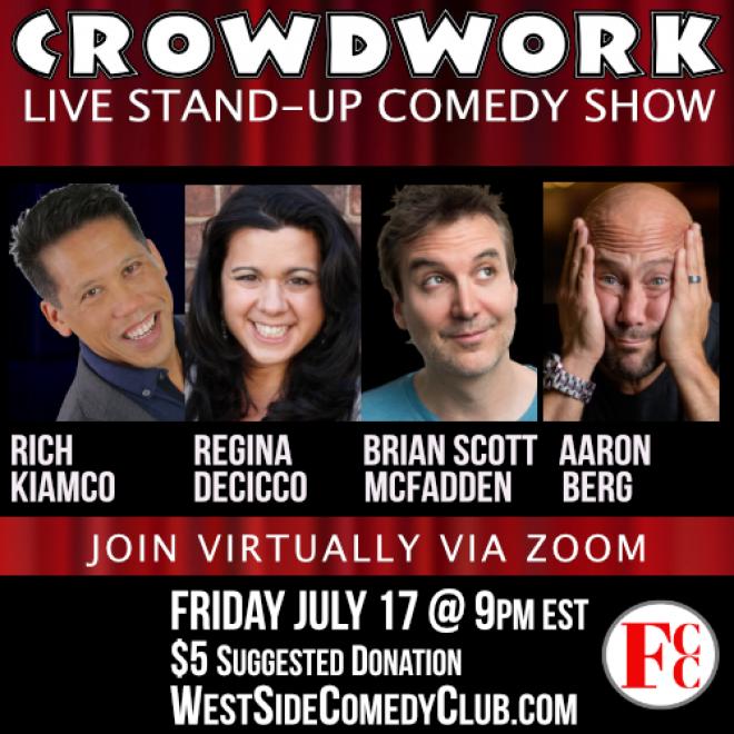 Come see top New York Comics do crowd work on you...the audience. Get up close and personal with your favorite comics that perform regularly at West Side Comedy Club. Hosted by Rich Kiamco this first Crowd Work show features Regina Decicco, Brian Scott McFadden and Aaron Berg.