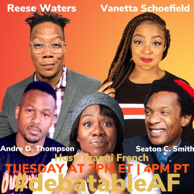 Franqi French hosts this weekly comedy debate show where serious comics argue over silly topics! Thsi weeks guest include Reese Waters, Vanetta Schoenfeld, Andre D Thompson and Seaton C Smith.