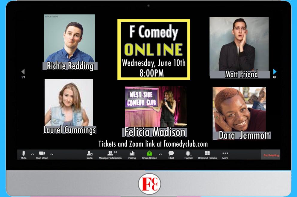 F Comedy Club an incubator for up and coming talent performs bi-weekly. This weeks lineup includes Laurel Cummings, Matt Friend, Dara Jemmott, Michael Geary and Richie Redding.