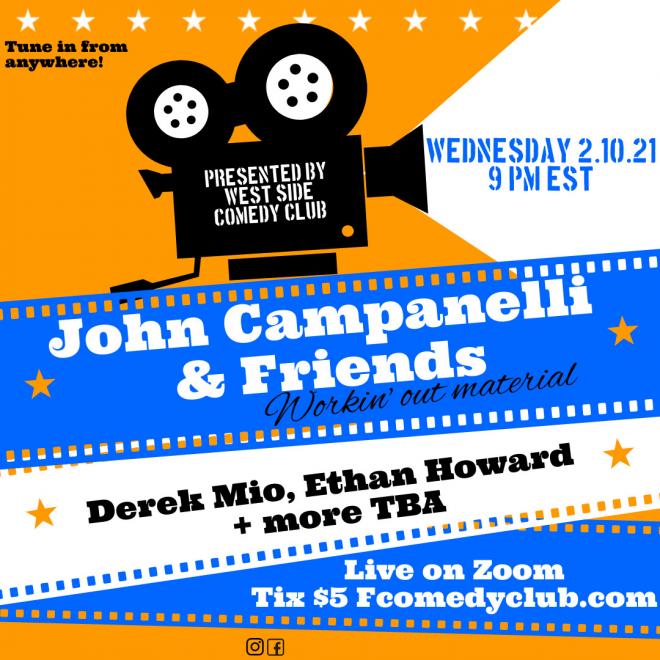 John Campanellis hosts this weekly show with his comedy friends. Lineup this week includes Derek Mio and Ethan Howard. Lineup Subject to change.