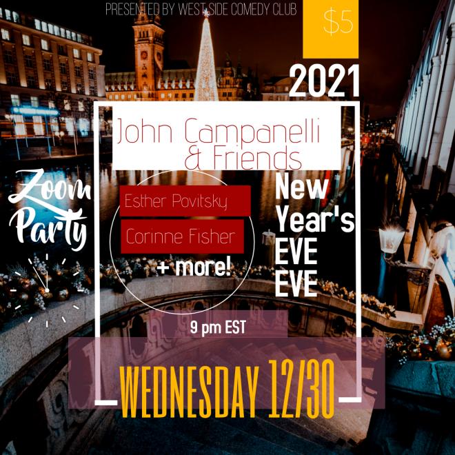 Join John Campanelli and friends Esther Povitsky and Corinne for this New Year's Eve Eve show ...let's say good bye to 2020 with a huge laugh.