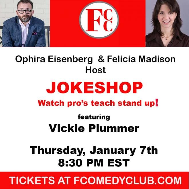 Joke Shop is a fun comedy show contest featuring top stand up comedians helping up and comers to hone their craft. Then some nights they turn their critique to stand up comedy shows to see how they are doing it all wrong. Join us with Karen Bergreen and Clayton Fletcher help fellow F Comedy Comedian Steve Cohen with his stand up and also work out new jokes with Ophira and Felicia. Hosted monthly by Felicia Madison and Ophira Eisenberg.