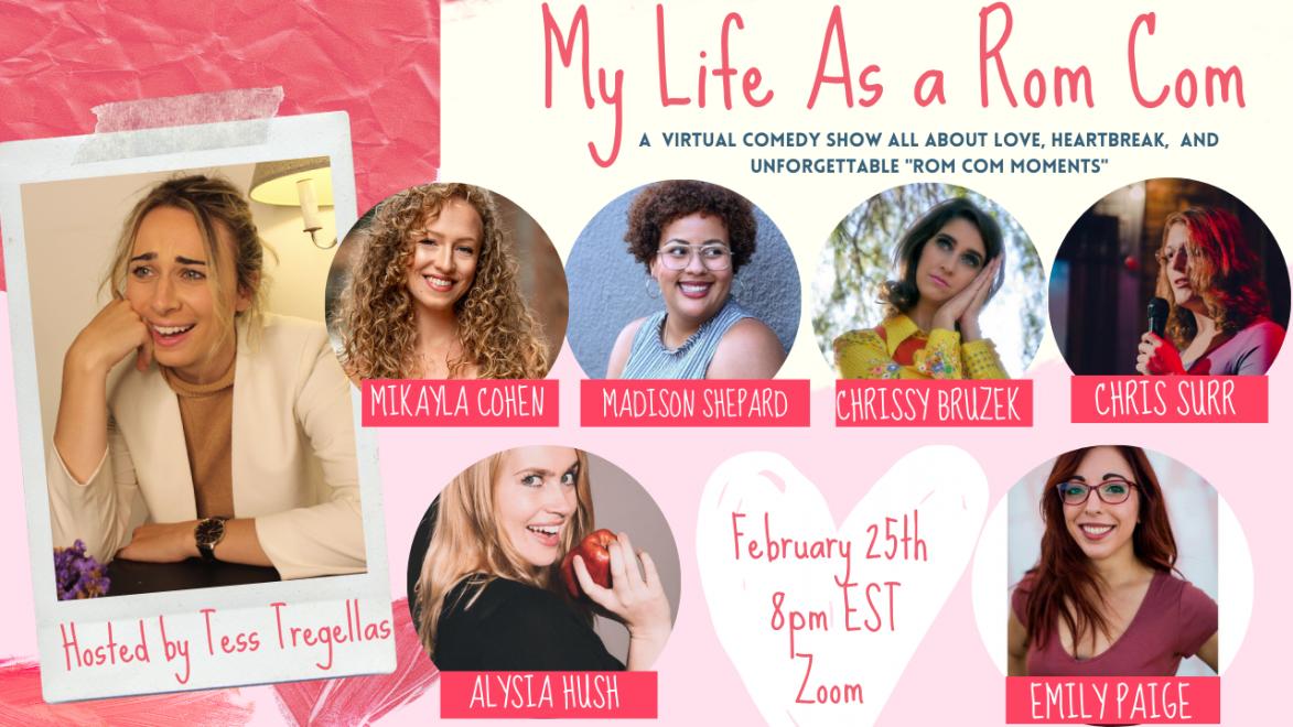 Tess Tregellas hosts this virtual show about love, hearbreak, romance and unforgettable Rom Com Moments. THis weeks lineup includes Mikayla Cohen, Chrissy Bruzek, Madison Shepard, Chris Shurr, Alysia Hush and Emily Paig. Lineup subject to change.