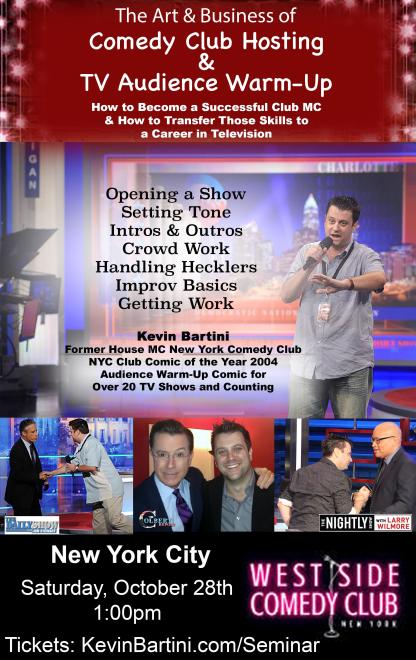 This seminar will help build the specific skill set that is required to be a good comedy club host. Kevin Bartini boils down lessons learned by trial and errors from a three decade career.