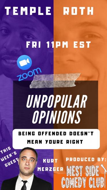 This is an interactive show where comics do their most honest, inappropriate bits/ opinions. The hosts interviews the comic, giving the audience a snap shot of the comic’s background. (Why do they think the way they do? Hosted by Dave Temple and Conrad Roth.